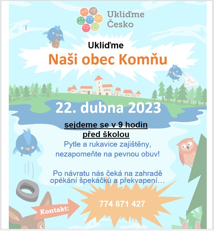 22. dubna 2023, srazv v 9:00 hod. před školou