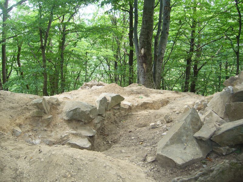 Kolem celého hradiště o 17 metrů níže prochází příkop, který je na severu a na jihu dost zanesený spadlým kamením, takže jeho hloubka není velká (2 - 3 metry). Na západní straně je příkop vytesán ve skále a je široký asi 12 m, dále následuje užší část (asi 6 metrů) a přístupová šíje, která se stáčí směrem k hradu. Hrad byl postaven z lomového kamene.