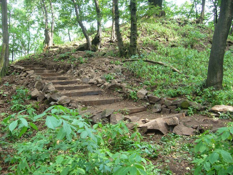 - dále byla vyřešena přístupová pěšina a to jednoduchými schody z dřevěných kuláčů