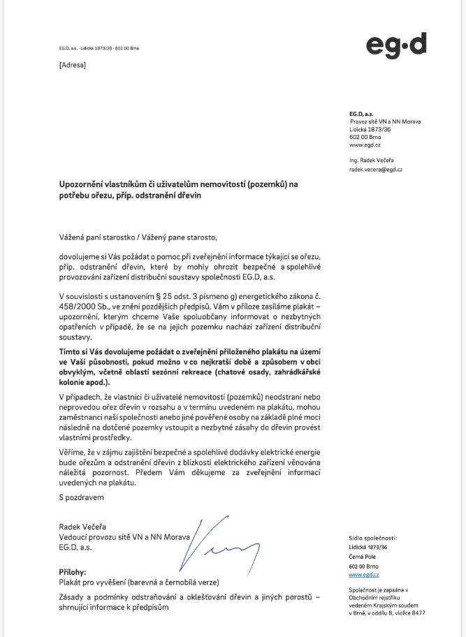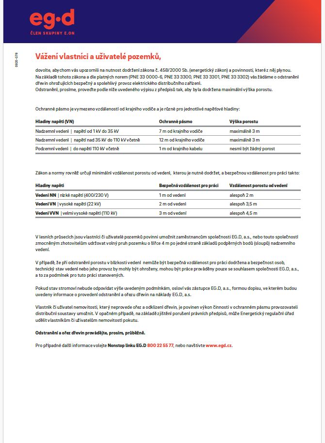 Aktuality - UPOZORNĚNÍ VLASTNÍKŮM ČI UŽIVATELŮM NEMOVITOSTÍ (POZEMKŮ) NA POTŘEBU OŘEZU, PŘÍP. ODSTRANĚNÍ DŘEVIN